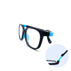Esta montura oftálmica para niños viene con un material de plástico negro y azul, brazos con goma flexibles con bisagras de alta resistencia. Perfecta para todo tipo de graduación.