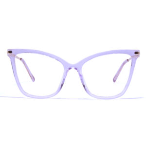 Montura oftálmica, con material acetato morado lila y brazos con bisagras de alta resistencia. Es ideal para todo tipo de graduación
